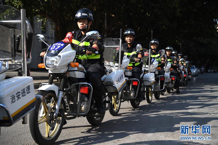10月1日,廣西南寧市公安局南湖分局治安巡邏隊(duì)在南寧市東葛路上巡邏。當(dāng)日是國(guó)慶節(jié),許多勞動(dòng)者堅(jiān)守在工作一線,在崗位上度過(guò)節(jié)日。新華社記者周華攝