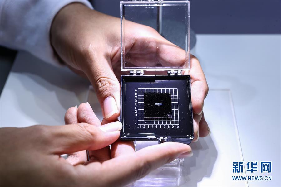 10月8日,工作人員在媒體開放日上展示光子人工智能芯片。