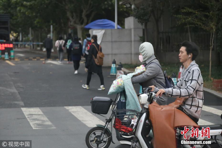 2018年10月9日,山東濟(jì)南,昨日一場(chǎng)秋雨過(guò)后開(kāi)始降溫,今天清晨最低氣溫只有6度,馬路上不少上班族穿上羽絨服騎車趕上班路。 圖片來(lái)源:視覺(jué)中國(guó)