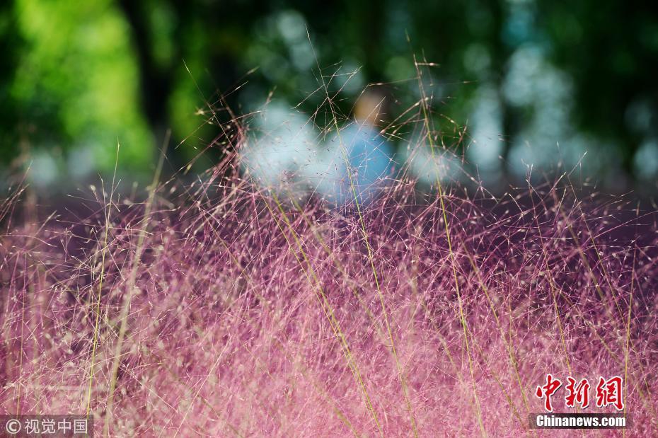 10月6日,江蘇南京,市民在江心洲粉黛亂子花田賞花拍照。 圖片來源:視覺中國