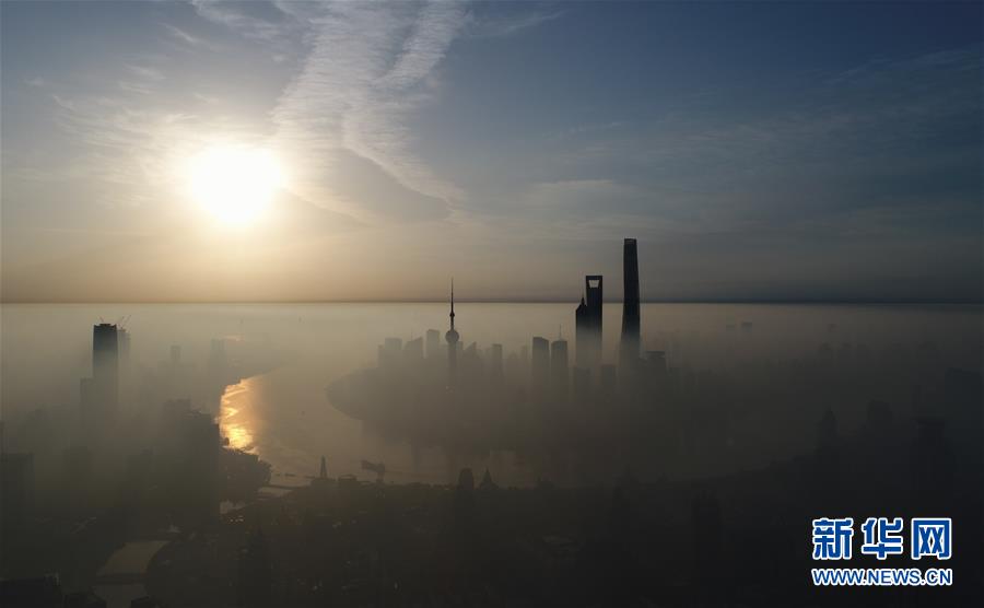 上海浦東陸家嘴晨曦(2017年9月20日無人機(jī)拍攝)。新華社記者 丁汀 攝