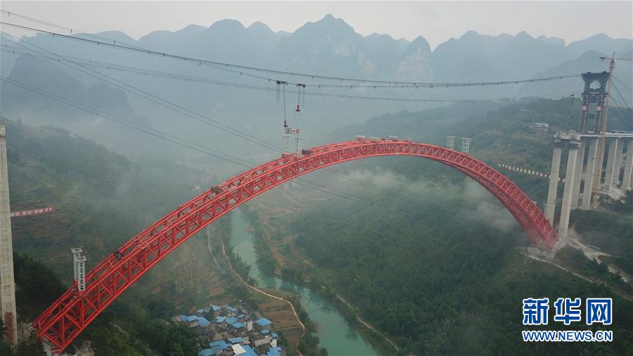 9月12日使用無人機(jī)拍攝的大小井特大橋。 目前,橫跨在貴州省羅甸縣大井河上的大小井特大橋建設(shè)進(jìn)入沖刺階段。大小井特大橋全長1.5公里,主跨450米,是世界最大跨徑上承式鋼管混凝土拱橋。據(jù)了解,該橋是平塘至羅甸高速公路關(guān)鍵性工程,對打通貴州“斷頭路”,助推滇黔桂石漠化片區(qū)脫貧攻堅具有重要意義。 新華社記者劉續(xù)攝