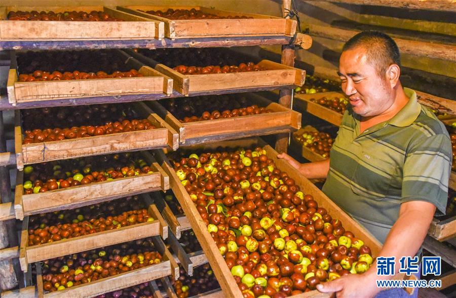 9月22日,河北省棗強(qiáng)縣棗強(qiáng)鎮(zhèn)孟家莊村的棗農(nóng)將紅棗放進(jìn)蒸房。 近日,河北省棗強(qiáng)縣的2000多畝棗園迎來收獲季,棗農(nóng)們搶抓農(nóng)時(shí),采摘、篩選、晾曬紅棗,樂享秋收的快樂。 新華社記者李曉果攝