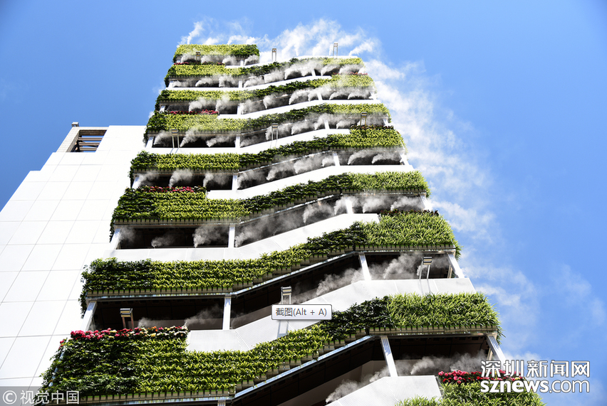 相關(guān)鏈接 10層高樓長滿綠植“仙氣飄飄” 這座建筑在抖音火了! 深圳新聞網(wǎng)訊 2018年6月10日,西安,高樓外長滿綠植,還縈繞著霧氣。這段只有6秒的短視頻在抖音火了,網(wǎng)友評(píng)論這是“第四代住房”,其實(shí)這是西安市眾創(chuàng)示范街區(qū)的一處安裝了智能霧森系統(tǒng)的西北最大戶外垂直綠化。 夏天能區(qū)域降溫5℃至10℃ 還可有效抑制PM10 “仙氣飄飄”、“西安天氣有多熱,房子都冒煙了”,這是一段抖音小視頻里網(wǎng)友的評(píng)論留言。視頻中一棟10層高的樓外側(cè)樓梯處掛滿了綠植,同時(shí)綠植上方還有噴霧。藍(lán)藍(lán)的天空當(dāng)做背景,引來不少人上前拍照,配著背景音樂的確讓人感覺清涼無比。