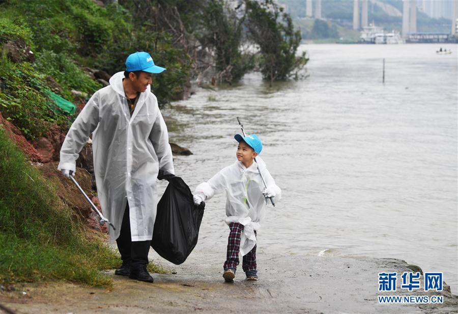 10月13日,參加“益起愛河”水資源保護公益活動的一對父子在重慶嘉陵江邊清理垃圾。 當(dāng)日,“益起愛河”水資源保護公益活動在重慶正式啟動?;顒又荚谕ㄟ^河道清理、城市水源工程探訪、濕地保護區(qū)調(diào)研等行動,號召更多社會人士投身于水資源生態(tài)保護工作。 新華社記者王全超攝