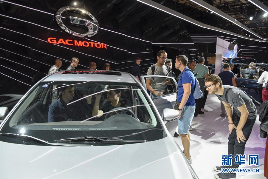 10月14日,在法國巴黎國際車展上,人們參觀廣汽傳祺品牌展臺(tái)。 當(dāng)日,2018年巴黎國際車展閉幕。據(jù)主辦方統(tǒng)計(jì),超過100萬人次參觀了本屆車展。 新華社記者 陳益宸 攝