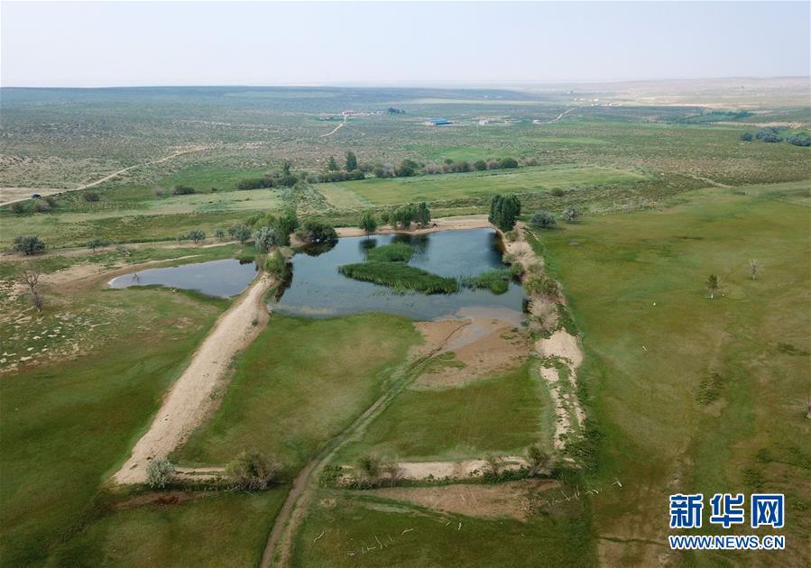 內(nèi)蒙古杭錦旗沙日召嘎查牧民白音道爾計(jì)治理過(guò)的庫(kù)布其沙漠(7月31日無(wú)人機(jī)拍攝)。 新華社記者邢廣利攝