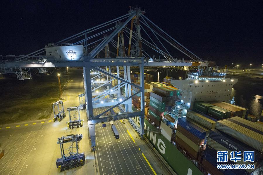 這是10月15日晚在比利時(shí)澤布呂赫港拍攝的正在進(jìn)行裝卸作業(yè)的集裝箱碼頭。新華社記者 葉平凡 攝