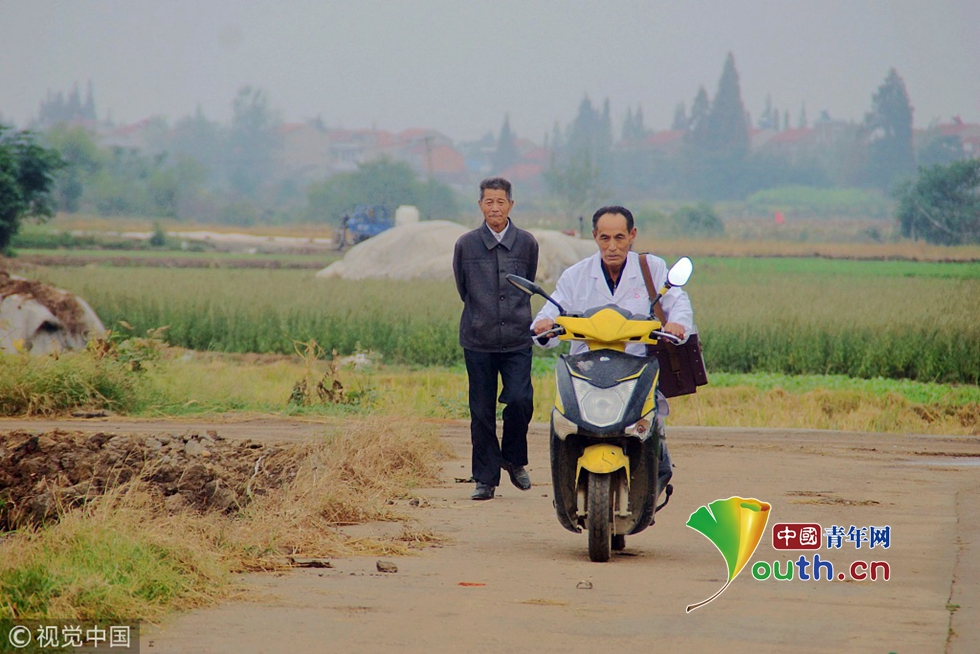 2018年9月26日,湖北孝感,云夢縣下辛店鎮(zhèn)白水湖村村醫(yī)陳年祥在村衛(wèi)生室為村民看病治病。對行動不便的病人、老年人,就上門為村民看病問診。圖片作者:陳保忠/視覺中國
