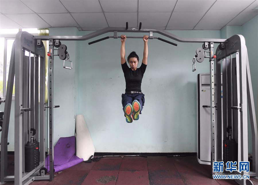 10月16日,湯春燕在健身房內(nèi)進(jìn)行體能訓(xùn)練。 新華社記者王全超攝