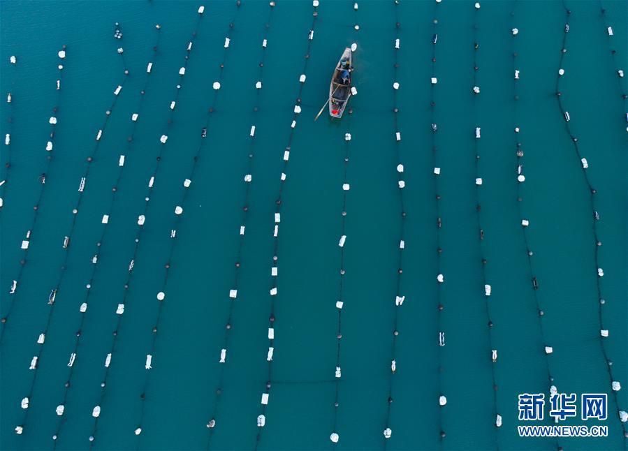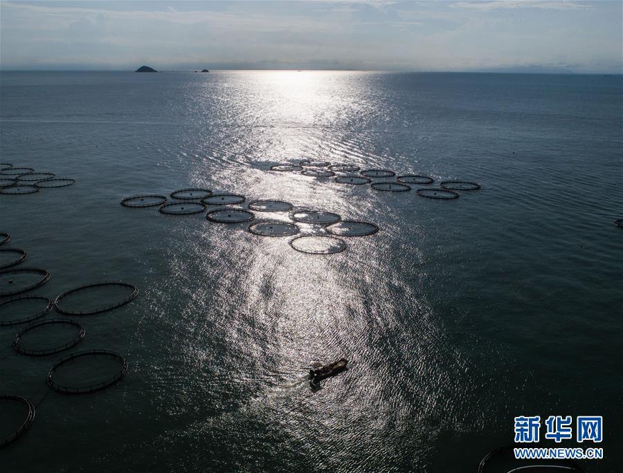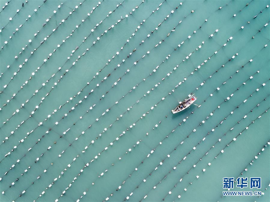 8月18日,南麂島海域的“海上牧場”養(yǎng)殖區(qū)內(nèi),漁民準(zhǔn)備進(jìn)行養(yǎng)殖作業(yè)(無人機(jī)拍攝)。進(jìn)入8月,浙江省溫州市平陽縣南麂鎮(zhèn)海域上大片的大黃魚、貽貝等特色海產(chǎn)品養(yǎng)殖區(qū)域迎來豐收季節(jié),養(yǎng)殖戶們駕駛漁船在養(yǎng)殖區(qū)海域進(jìn)行打撈收獲,在碧海藍(lán)天下構(gòu)成了一幅“海上牧場”的美麗豐收景象。近年來,南麂鎮(zhèn)政府引導(dǎo)漁民養(yǎng)殖戶充分發(fā)揮“靠海吃?!钡馁Y源優(yōu)勢,大力發(fā)展海洋養(yǎng)殖經(jīng)濟(jì)和海島旅游經(jīng)濟(jì),實現(xiàn)了南麂由“生態(tài)美”向“產(chǎn)業(yè)美”,“產(chǎn)業(yè)美”向“經(jīng)濟(jì)美”的轉(zhuǎn)變。同時該鎮(zhèn)堅持以大黃魚、貽貝等為特色產(chǎn)業(yè)支撐,精準(zhǔn)發(fā)展高效海洋養(yǎng)殖業(yè),重點(diǎn)培養(yǎng)一批新型職業(yè)漁民,依靠專業(yè)技術(shù)支持,實現(xiàn)深海仿生養(yǎng)殖,讓好生態(tài)造就好品質(zhì),重點(diǎn)打造南麂養(yǎng)殖品牌,組建營銷網(wǎng)絡(luò),拓展特色海產(chǎn)品市場。新華社記者 徐昱攝