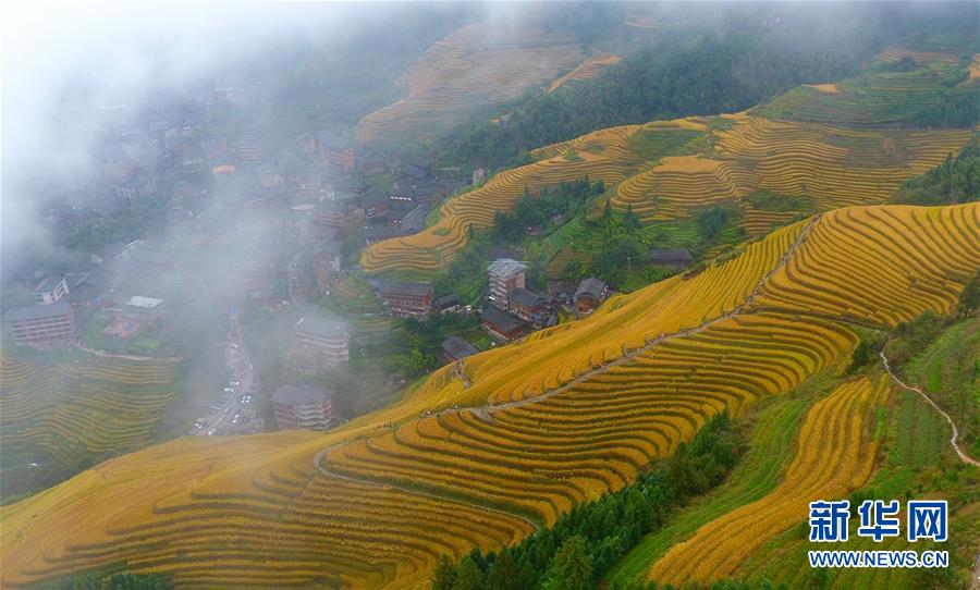 這是10月16日無人機(jī)拍攝的龍脊梯田秋色。金秋時(shí)節(jié),廣西龍勝各族自治縣龍脊梯田美如畫卷。 新華社記者 黃孝邦 攝