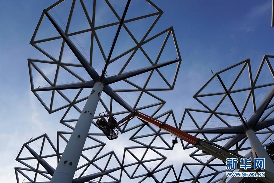 10月18日拍攝的建設(shè)中的北京世園會(huì)國(guó)際館。 新華社記者 鞠煥宗 攝