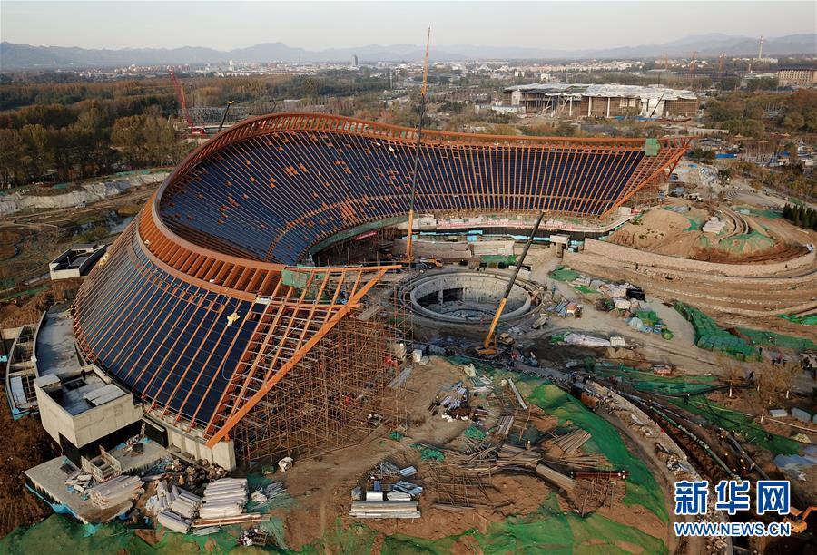 10月18日拍攝的建設(shè)中的北京世園會(huì)國(guó)際館。新華社記者 鞠煥宗 攝