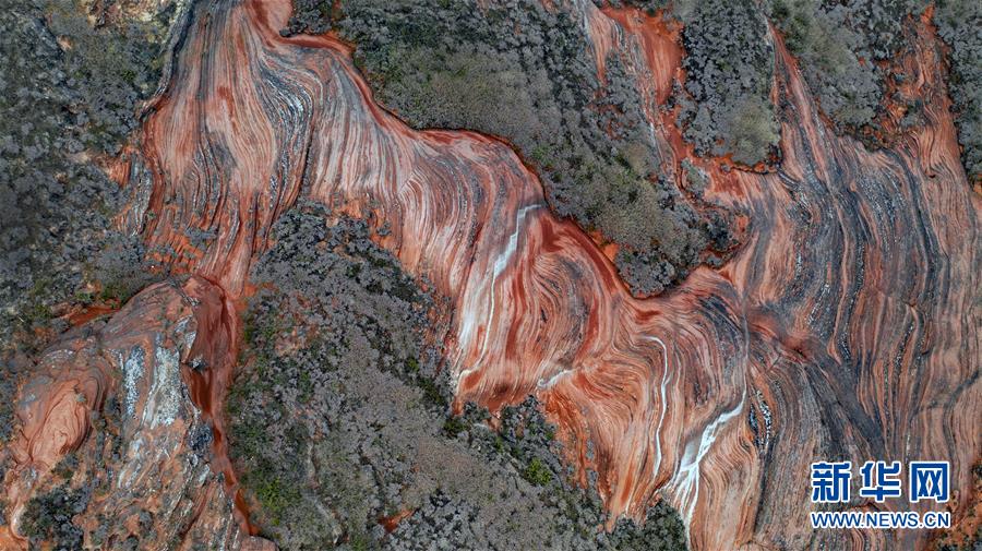 10月21日無人機(jī)拍攝的王家灣丹霞地貌。 新華社記者陶明攝