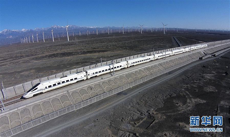 一輛和諧號動車穿行在新疆烏魯木齊達坂城風(fēng)力發(fā)電場的“風(fēng)車森林”里(2014年11月16日無人機拍攝)。今年以來,新疆穩(wěn)步推進新能源參與“疆電外送”、擴大與燃煤自備電廠調(diào)峰替代交易等多種電力交易方式,著力破解“綠色電力”上網(wǎng)難題,新能源發(fā)電量同比增加近13個百分點,而棄電量和棄電比實現(xiàn)“雙降”,綠色發(fā)展理念進一步落實。 新疆是我國重要的能源供應(yīng)和儲備基地,風(fēng)能、太陽能儲量豐富。近年來,新疆新能源裝機總量突破2700萬千瓦,規(guī)模和占比均居全國前列。新華社記者 江文耀 攝