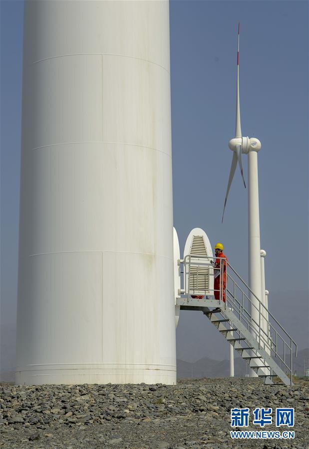 在新疆烏魯木齊達(dá)坂城風(fēng)力發(fā)電場(chǎng),工作人員查看風(fēng)力發(fā)電設(shè)備(2018年9月18日攝)。今年以來(lái),新疆穩(wěn)步推進(jìn)新能源參與“疆電外送”、擴(kuò)大與燃煤自備電廠調(diào)峰替代交易等多種電力交易方式,著力破解“綠色電力”上網(wǎng)難題,新能源發(fā)電量同比增加近13個(gè)百分點(diǎn),而棄電量和棄電比實(shí)現(xiàn)“雙降”,綠色發(fā)展理念進(jìn)一步落實(shí)。新疆是我國(guó)重要的能源供應(yīng)和儲(chǔ)備基地,風(fēng)能、太陽(yáng)能儲(chǔ)量豐富。近年來(lái),新疆新能源裝機(jī)總量突破2700萬(wàn)千瓦,規(guī)模和占比均居全國(guó)前列。新華社記者 趙戈 攝