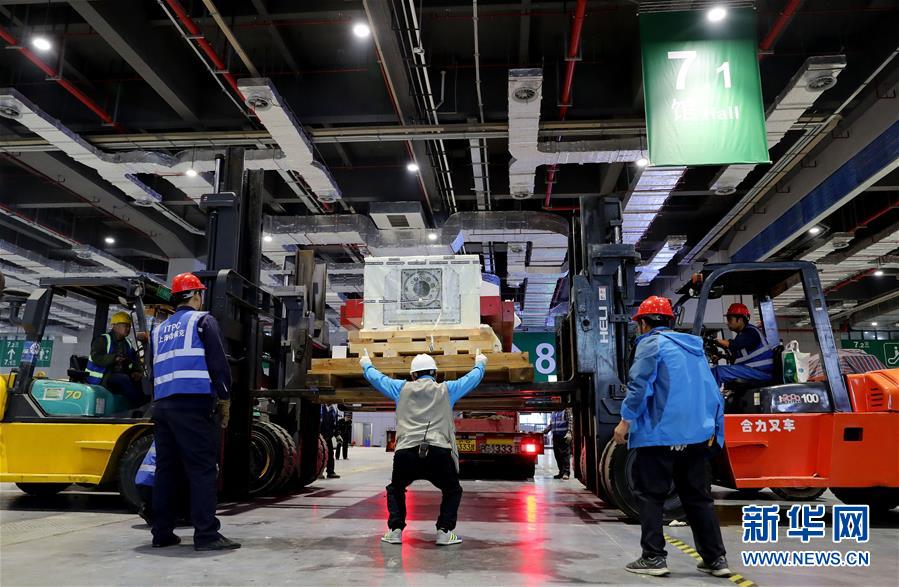10月22日,現(xiàn)場(chǎng)工人動(dòng)用四臺(tái)叉車(chē)同時(shí)作業(yè),將“金牛座”龍門(mén)銑床核心部件溜板滑枕抬起后等待卡車(chē)就位裝車(chē)。 當(dāng)日,來(lái)自德國(guó)的首屆進(jìn)口博覽會(huì)最大展品——“金牛座”龍門(mén)銑床完成初步組裝,將運(yùn)往國(guó)家會(huì)展中心(上海)3號(hào)館進(jìn)行最后的安裝施工。這是德國(guó)瓦德里希科堡公司研發(fā)的機(jī)床設(shè)備,高約8米,占地面積約200平方米,將在智能及高端裝備區(qū)進(jìn)行展出。 新華社記者方喆攝