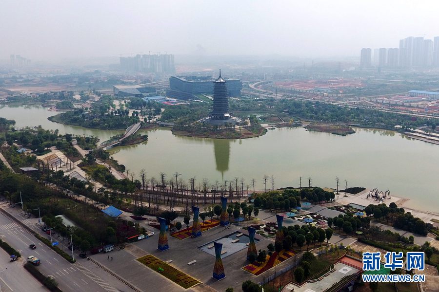 圖為無(wú)人機(jī)航拍的五象湖公園(攝于2018年3月5日)。新華網(wǎng)發(fā) 韋秀玲攝