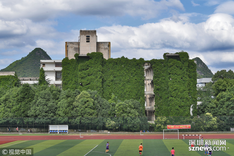 2018年6月20日,貴陽,貴州大學(xué)現(xiàn)12層樓近50米高綠色“巨瀑”。據(jù)悉,這是該校的老師們在26年前栽種的300多棵爬山虎,如今爬滿12層高的圖書館大樓,猶如“綠色城堡”。