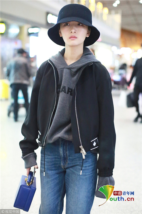近日,周冬雨現(xiàn)身機場,她穿黑色夾克配牛仔褲,男友風造型顯嬌小玲瓏,漁夫帽遮去大半邊臉,簡直小朋友既視感!