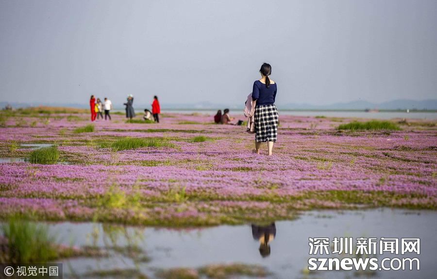 深圳新聞網(wǎng)訊  2018年10月23日,南昌,游人在江西鄱陽湖都昌濕地蓼子花海內(nèi)游玩。連日來,中國第一大淡水湖江西鄱陽湖濕地大面積蓼子花開放,秋景宜人,紫色的花海吸引大批游客前來賞景游玩。