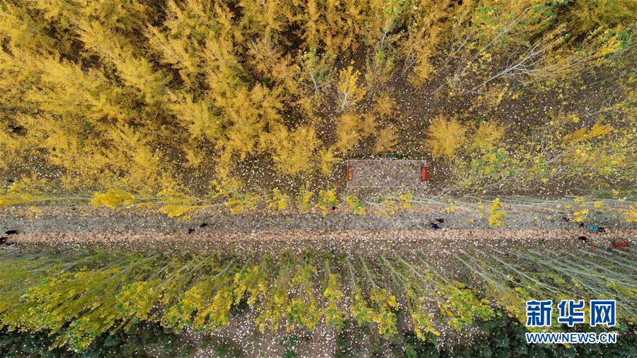 寧夏銀川市鳳凰公園秋景(10月20日無(wú)人機(jī)拍攝)。