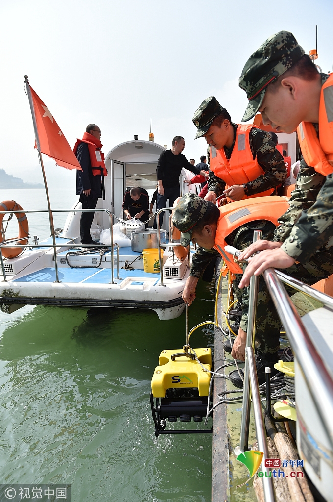 2018年10月29日,武警重慶總隊(duì)船艇支隊(duì)官兵使用水下機(jī)器人搜尋。