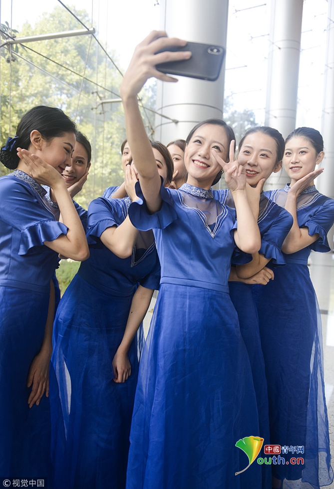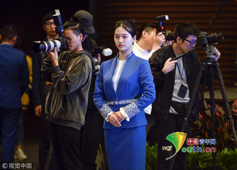 2018年11月1日,浙江省桐鄉(xiāng)市,第五屆世界互聯(lián)網(wǎng)大會(huì)志愿者“小梧桐”出征。圖片作者:王振宇/視覺(jué)中國(guó)