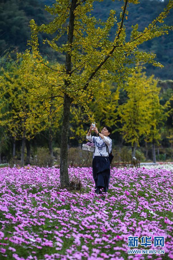 11月2日,游客在金黃的銀杏樹下觀賞秋色。 新華社記者 徐昱 攝