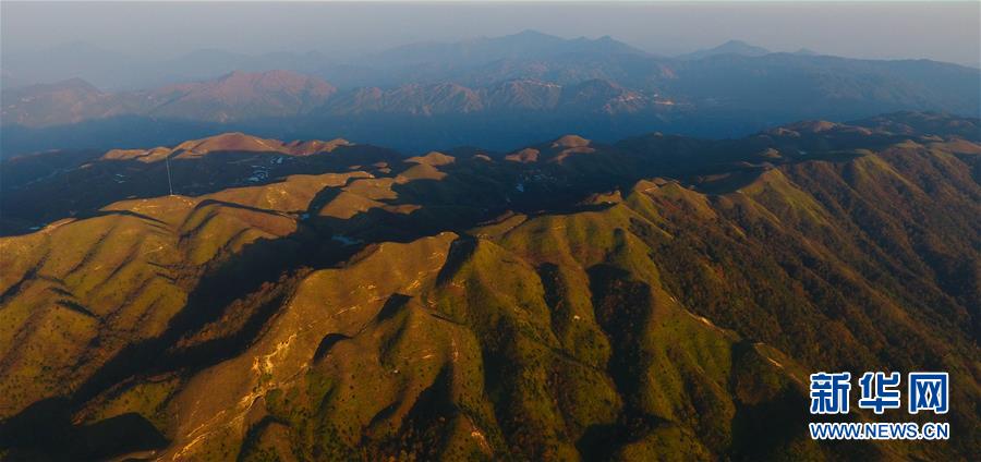 夕陽(yáng)下的摩天嶺草場(chǎng)(11月2日無(wú)人機(jī)拍攝)。金秋時(shí)節(jié),廣西融水苗族自治縣桿洞鄉(xiāng)堯告村的摩天嶺草場(chǎng)天高云淡,景色迷人。新華社記者周華攝