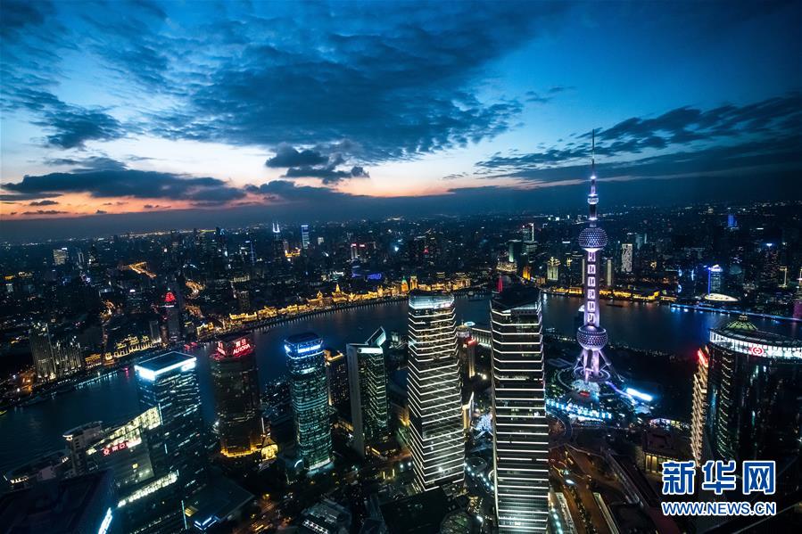 這是11月3日傍晚時分拍攝的的上海陸家嘴和外灘夜景。 首屆中國國際進(jìn)口博覽會即將在上海開幕。美麗的上海張開懷抱,迎接八方來客。 新華社記者 李鑫 攝