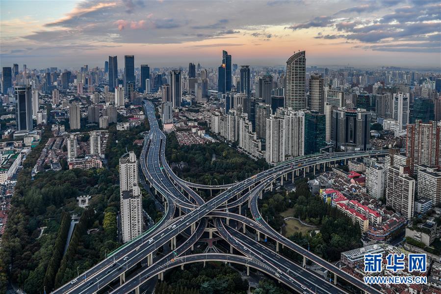 11月2日拍攝的上海市區(qū)景觀。首屆中國國際進口博覽會即將在上海開幕。美麗的上海張開懷抱,迎接八方來客。 新華社記者 李鑫 攝