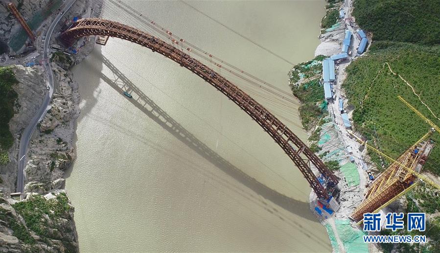 9月28日無人機拍攝的川藏鐵路拉林段重點標(biāo)志性工程藏木特大橋。 當(dāng)日,隨著最后一節(jié)鋼管拱的對位和鎖定完畢,川藏鐵路拉林段藏木特大橋成功合龍,標(biāo)志著大橋主體結(jié)構(gòu)施工取得了關(guān)鍵性勝利。藏木特大橋由中國中鐵廣州局集團(tuán)承建,拱高112米,橋橫跨雅魯藏布江峽谷,水深66米。 新華社記者普布扎西攝