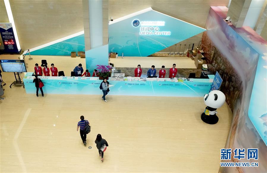 11月4日,媒體記者在首屆中國(guó)國(guó)際進(jìn)口博覽會(huì)新聞中心咨詢臺(tái)咨詢。新華社記者陳建力攝