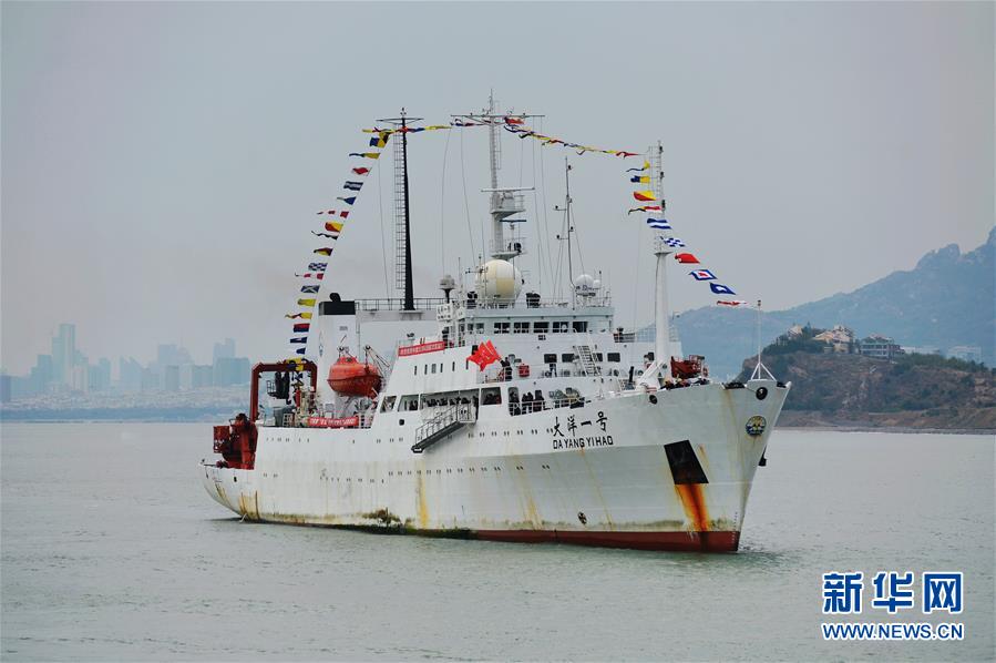 11月7日,“大洋一號”駛?cè)胛挥谇鄭u市嶗山區(qū)的青島海洋科學(xué)考察基地碼頭。 新華社發(fā)(王海濱 攝)