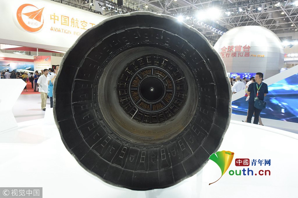 2018年11月7日,珠海航展上,觀眾在觀看國產(chǎn)新型渦扇發(fā)動機“太行發(fā)動機”。之前的航展上殲10B依托國產(chǎn)發(fā)動機一鳴驚人,獲得滿場喝彩。