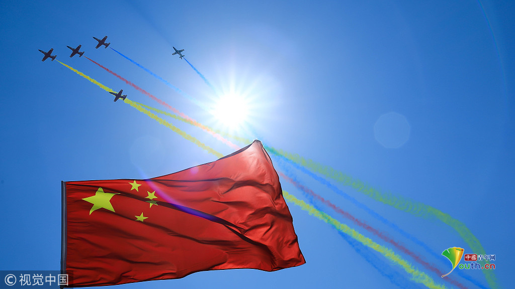 2018年11月7日,空軍紅鷹隊(duì)在廣東省珠海市第十三屆中國(guó)航空航天博覽會(huì)上進(jìn)行飛行表演。視覺(jué)中國(guó)