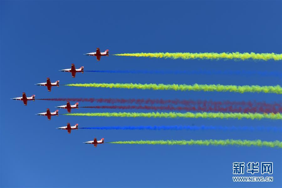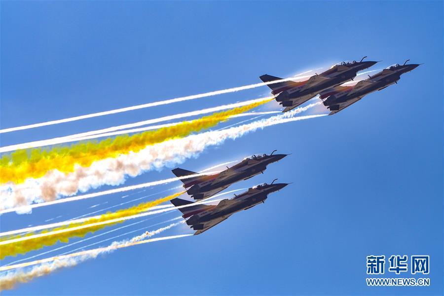11月6日,中國空軍八一飛行表演隊(duì)在航展現(xiàn)場進(jìn)行飛行表演。當(dāng)日,第十二屆中國國際航空航天博覽會在珠海開幕。 新華社記者楊光攝