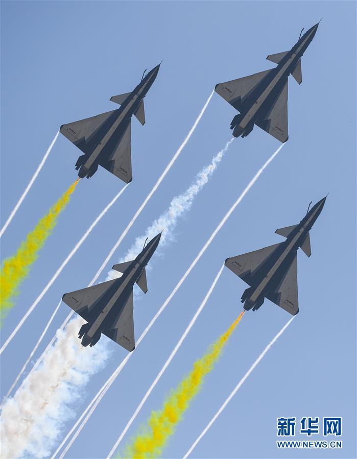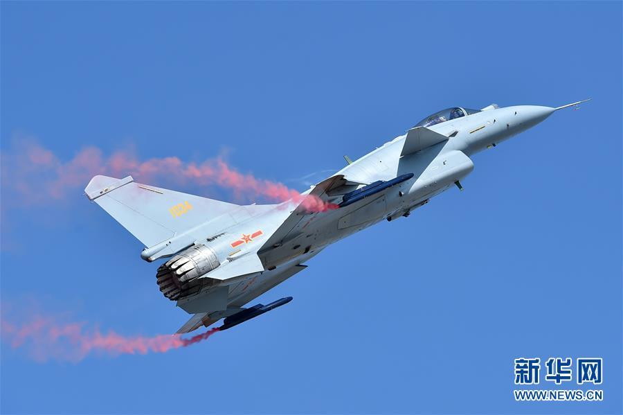 11月6日,殲-10B在飛行表演中。 新華社記者楊光攝