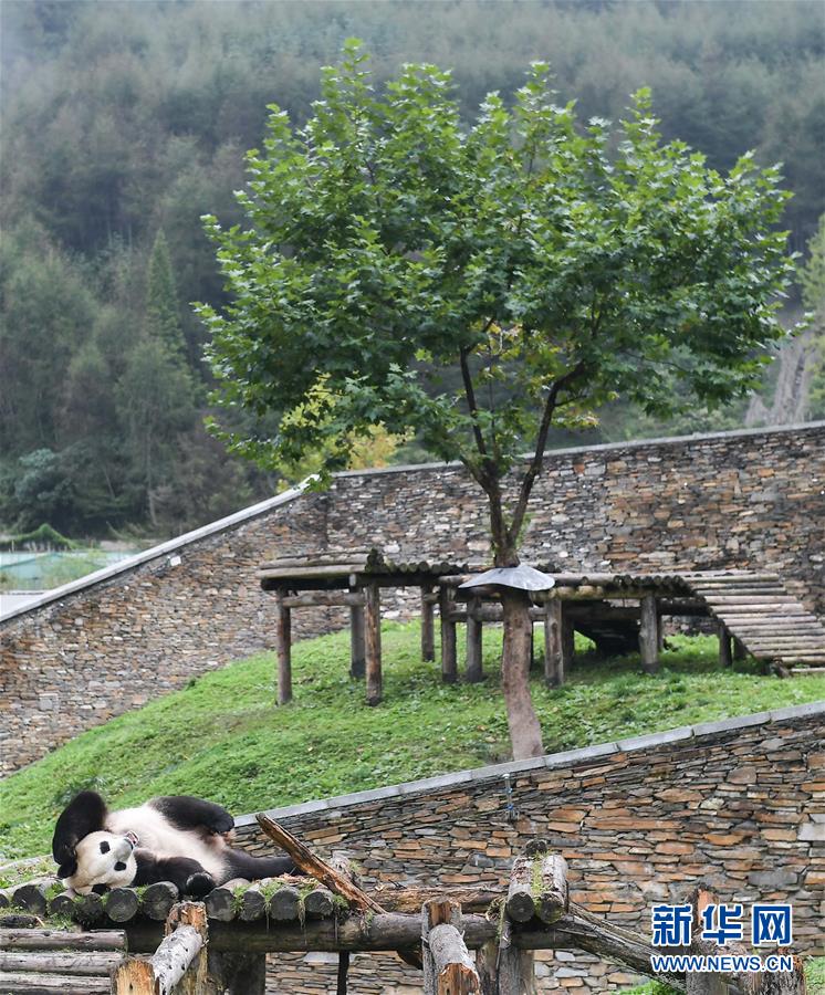 這是在中國大熊貓保護(hù)研究中心雅安碧峰峽基地拍攝的大熊貓(2017年10月13日攝)。