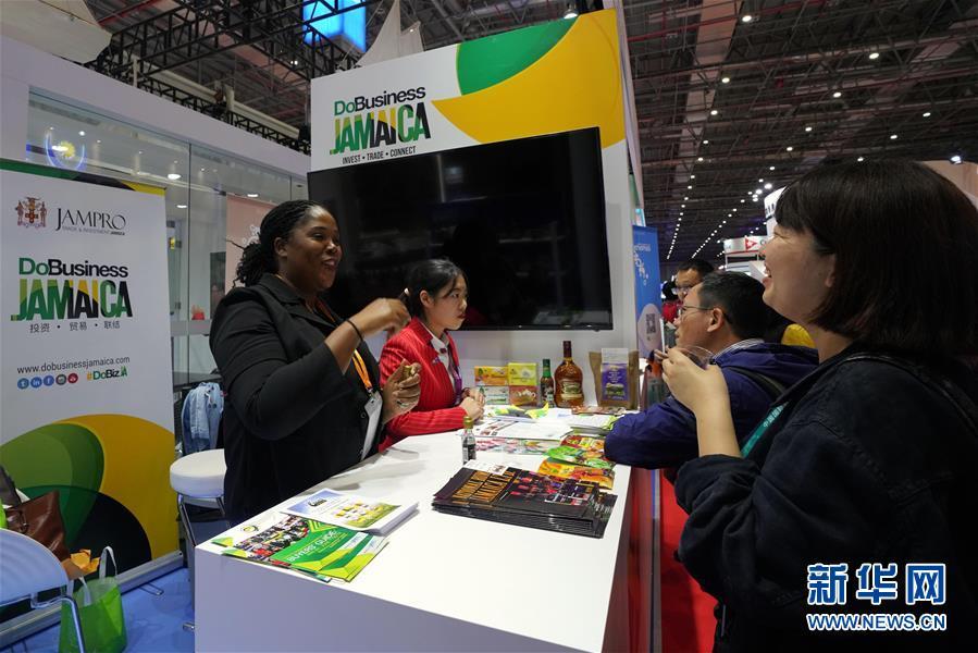 11月8日,在加勒比地區(qū)國家展區(qū)牙買加展臺(tái),工作人員請(qǐng)參觀者品嘗本國特色食品。 中國國際進(jìn)口博覽會(huì)11月5日在上海開幕。國家貿(mào)易投資綜合展(國家展)是中國國際進(jìn)口博覽會(huì)的重要內(nèi)容,共有82個(gè)國家、3個(gè)國際組織設(shè)立71個(gè)展臺(tái)。 新華社記者 程麗 攝