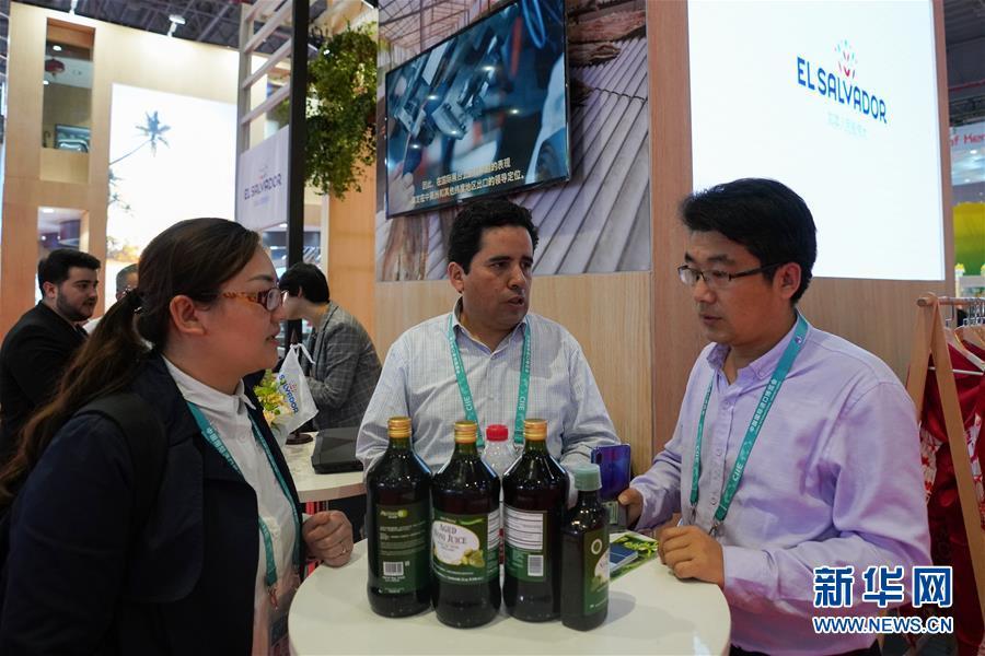 11月7日,在薩爾瓦多展區(qū),一名參觀者(左)聽取工作人員推介當(dāng)?shù)厣a(chǎn)的諾麗果汁。 中國國際進(jìn)口博覽會(huì)11月5日在上海開幕。國家貿(mào)易投資綜合展(國家展)是中國國際進(jìn)口博覽會(huì)的重要內(nèi)容,共有82個(gè)國家、3個(gè)國際組織設(shè)立71個(gè)展臺(tái)。 新華社記者 王天聰 攝