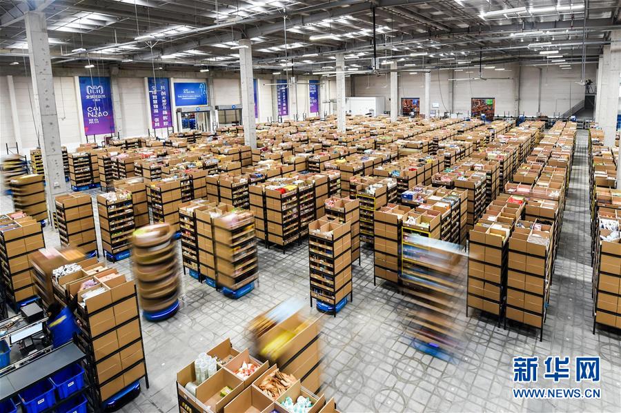 11月8日,智能搬運(yùn)機(jī)器人在倉庫內(nèi)進(jìn)行搬運(yùn)作業(yè)。