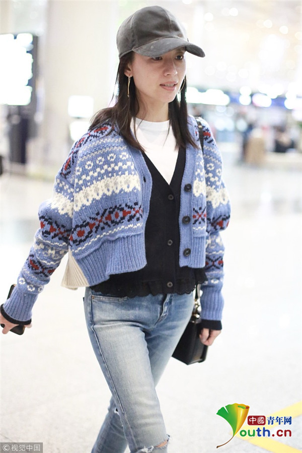 董潔素面朝天現(xiàn)機(jī)場(chǎng)