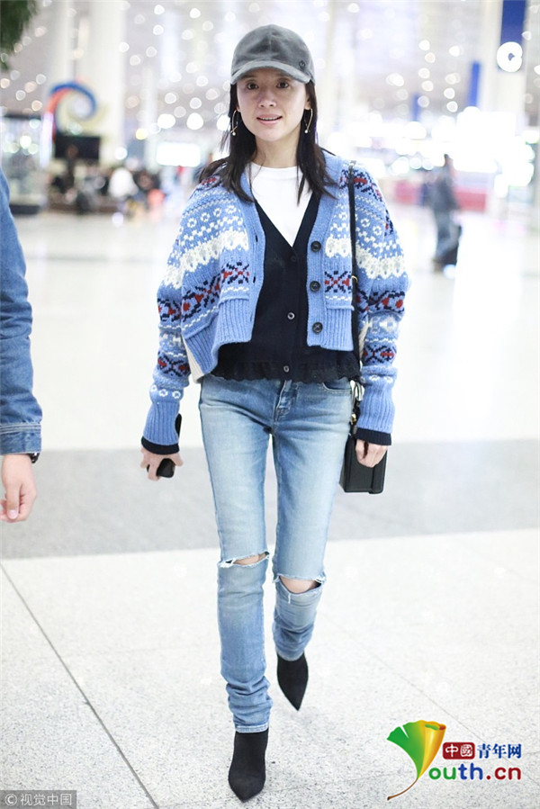 2018年11月8日,北京,“不老女神”董潔現(xiàn)身機場,雖然素面朝天依舊顏值超高,身高1米6也輕松擁有大長腿,身材比例超棒!
