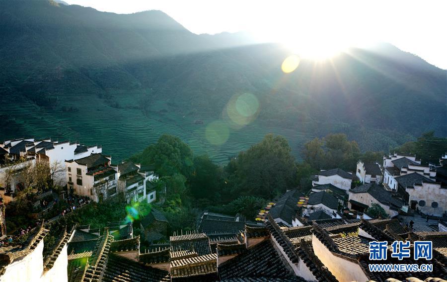 雨后放晴的江西婺源縣,藍(lán)天白云與依山傍水的徽派古村落形成了一幅幅美麗畫(huà)卷。