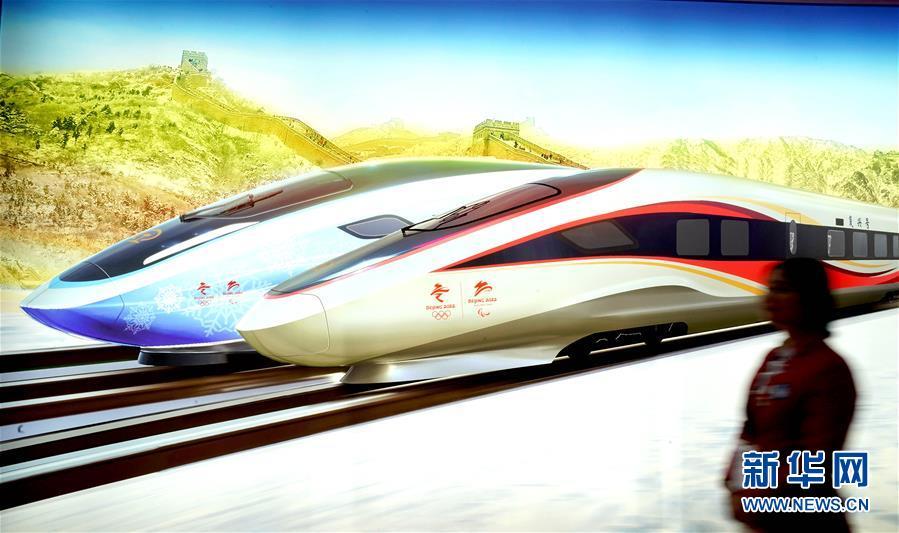 11月8日,一位志愿者從進博會中國館一幅高鐵概念圖前走過。 新華社記者 陳建力 攝