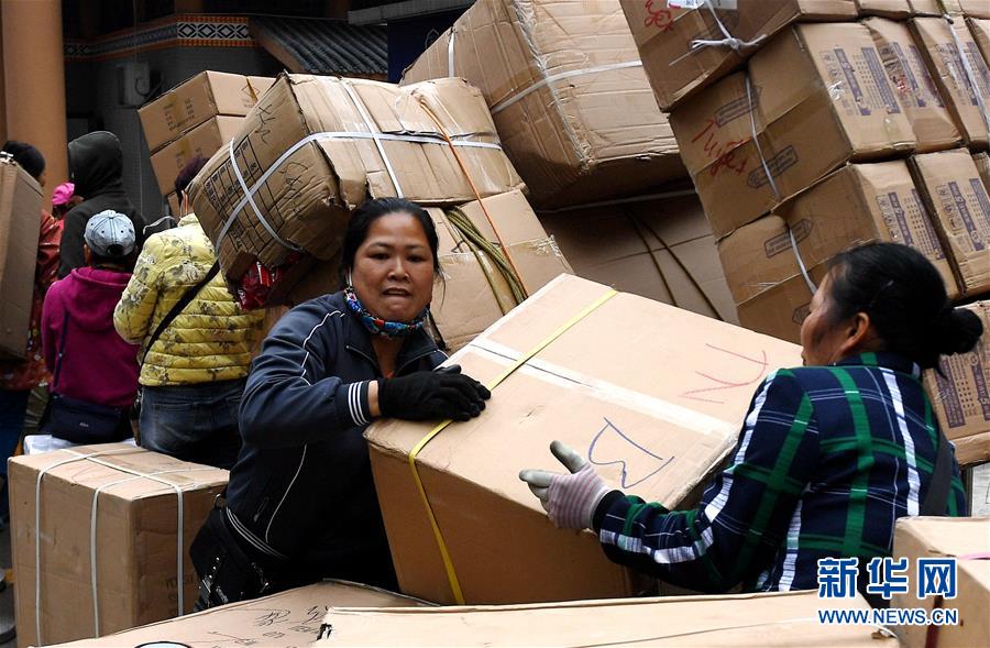 人們在廣西憑祥市浦寨邊貿(mào)區(qū)搬運(yùn)貨品(1月16日攝)。新華社記者 張愛林 攝