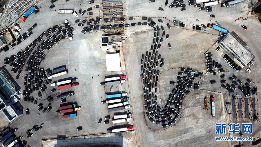 廣西寧明縣愛店口岸的互市車輛在進(jìn)出關(guān)口(9月7日無人機(jī)拍攝)。新華社記者 張愛林 攝